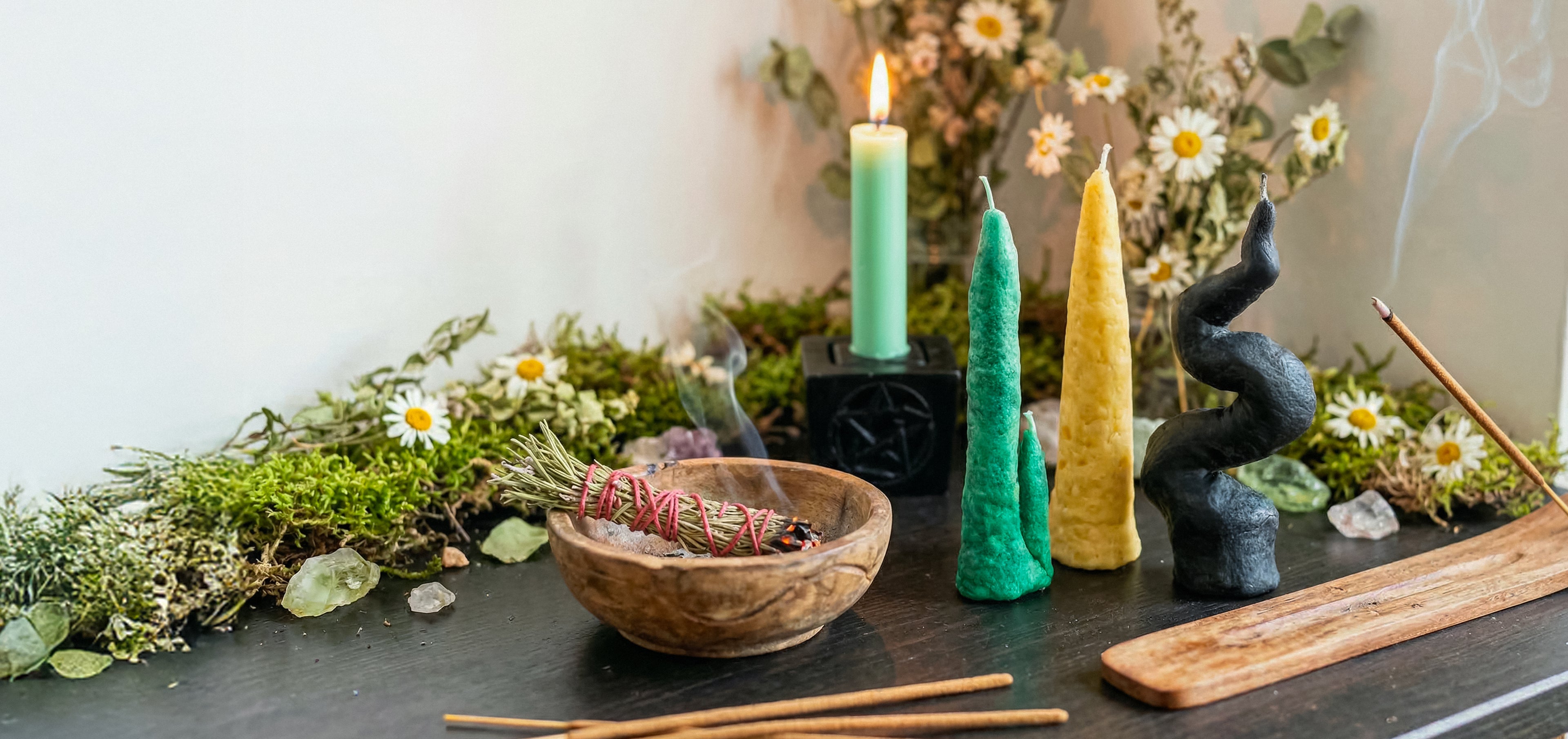 Atelier Datura crée des bougies rituelles, chandelles naturelles et encens artisanaux pour les sorcières modernes.